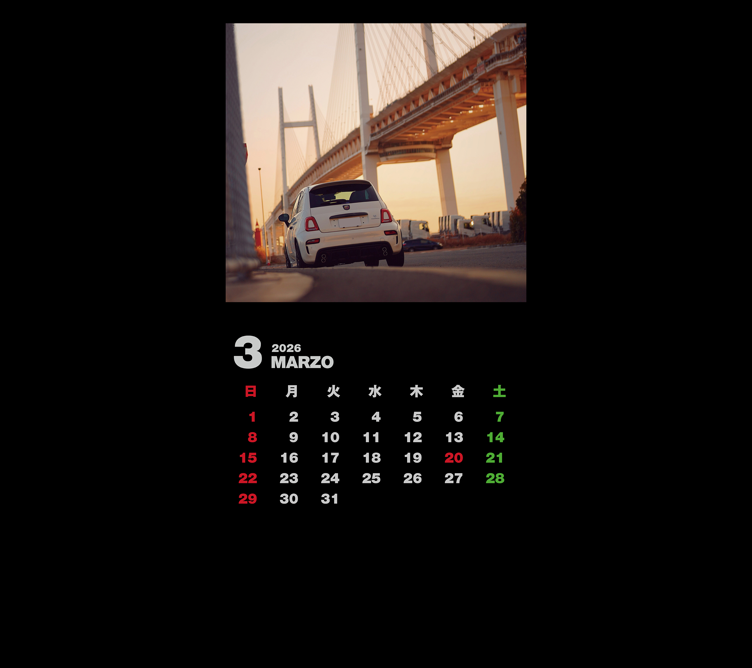 オーナーインタビューからブランドを取り巻くカルチャー、母国イタリアの情報まで、アバルトにまつわる情熱的で奥深いトピックを様々な切り口でご紹介している、アバルトファンにはお馴染みのWEBマガジン。今回、サソリの魅力を知り尽くす編集部が嶋田智之氏とともにカレンダー採用写真を選定。