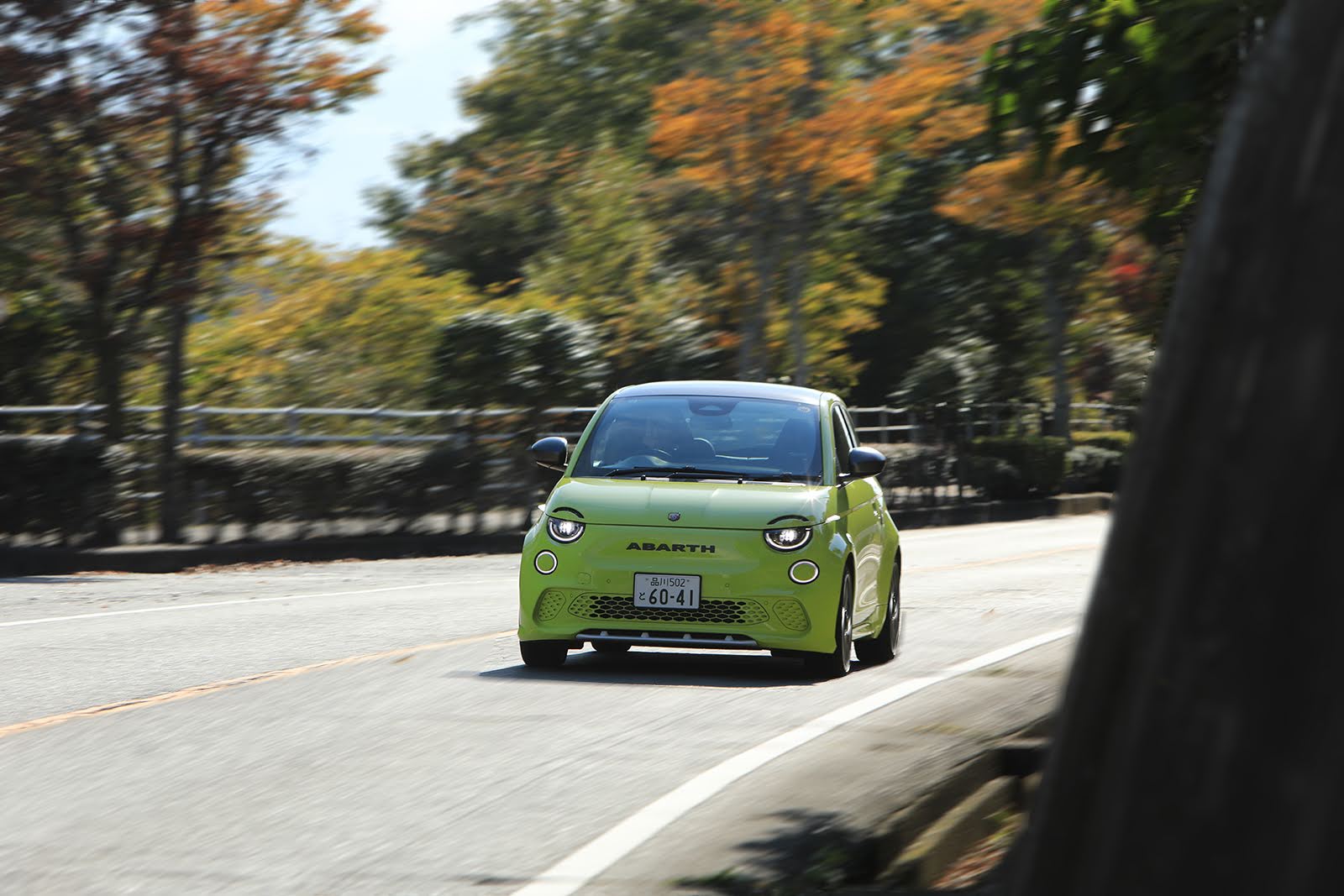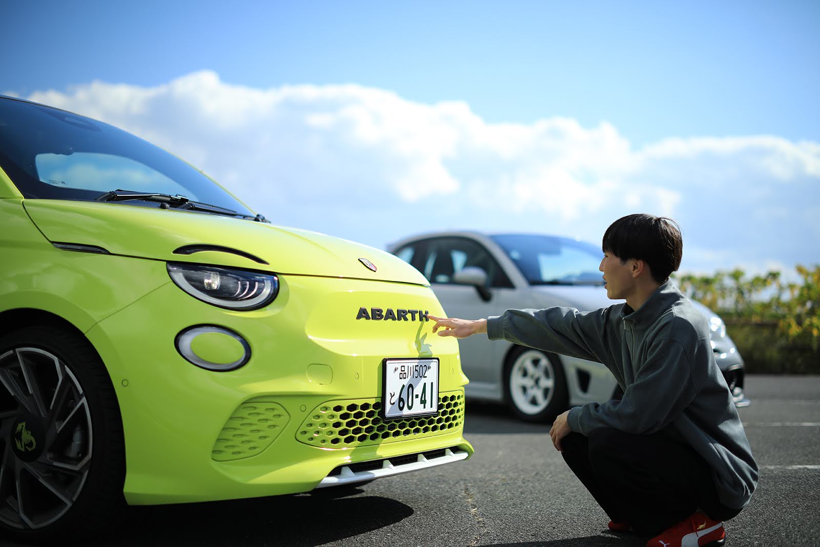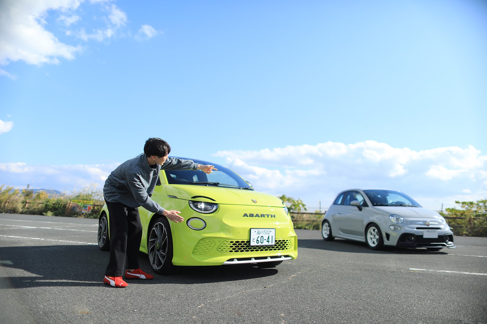 「僕は“欲しい!”と思いました。まだ本気では走っていませんが、期待できます。フレームは強いし低重心で、モーターのパワーも力強い。エンジンのアバルトにはない良さがあります。初速の出方が全然違って、フルアクセルだと逆に怖いくらい。でも、そのぶん足回りやサスペンションがしっかり作られていて、さすがアバルトだと感じました。安心感があります」