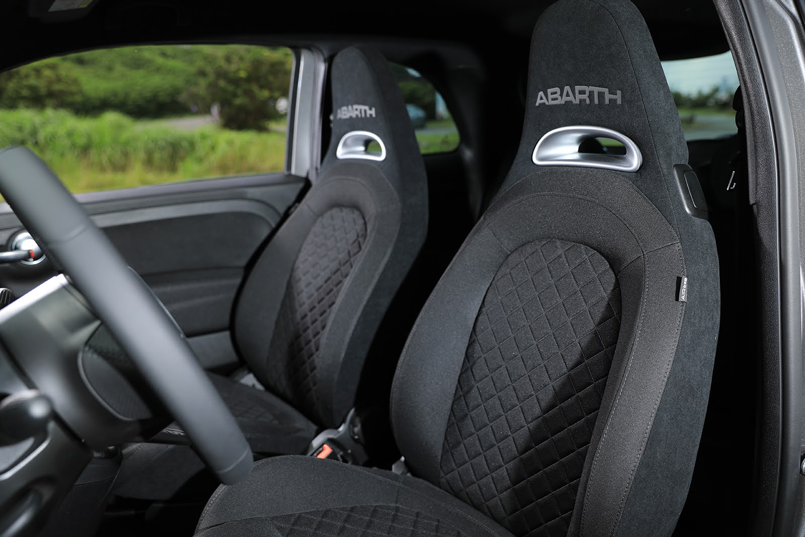 アバルトのラインアップの中で最も新しいモデルとなるF595の“F”は、フォーミュラの“F”。アバルトとシングルシーターマシンとの関わりが50周年を迎えたことを記念して、イタリア本国では2021年の夏に設定されたモデルです。ただネーミングを持ってきただけ、ではありません。595シリーズの165ps仕様のパワーユニットは、現在のFIA-F4マシン用エンジンのベースとなったもので、チューニングをほとんど変えることなく搭載。つまり両車は同じ心臓を持っている、といっていい間柄なのです。