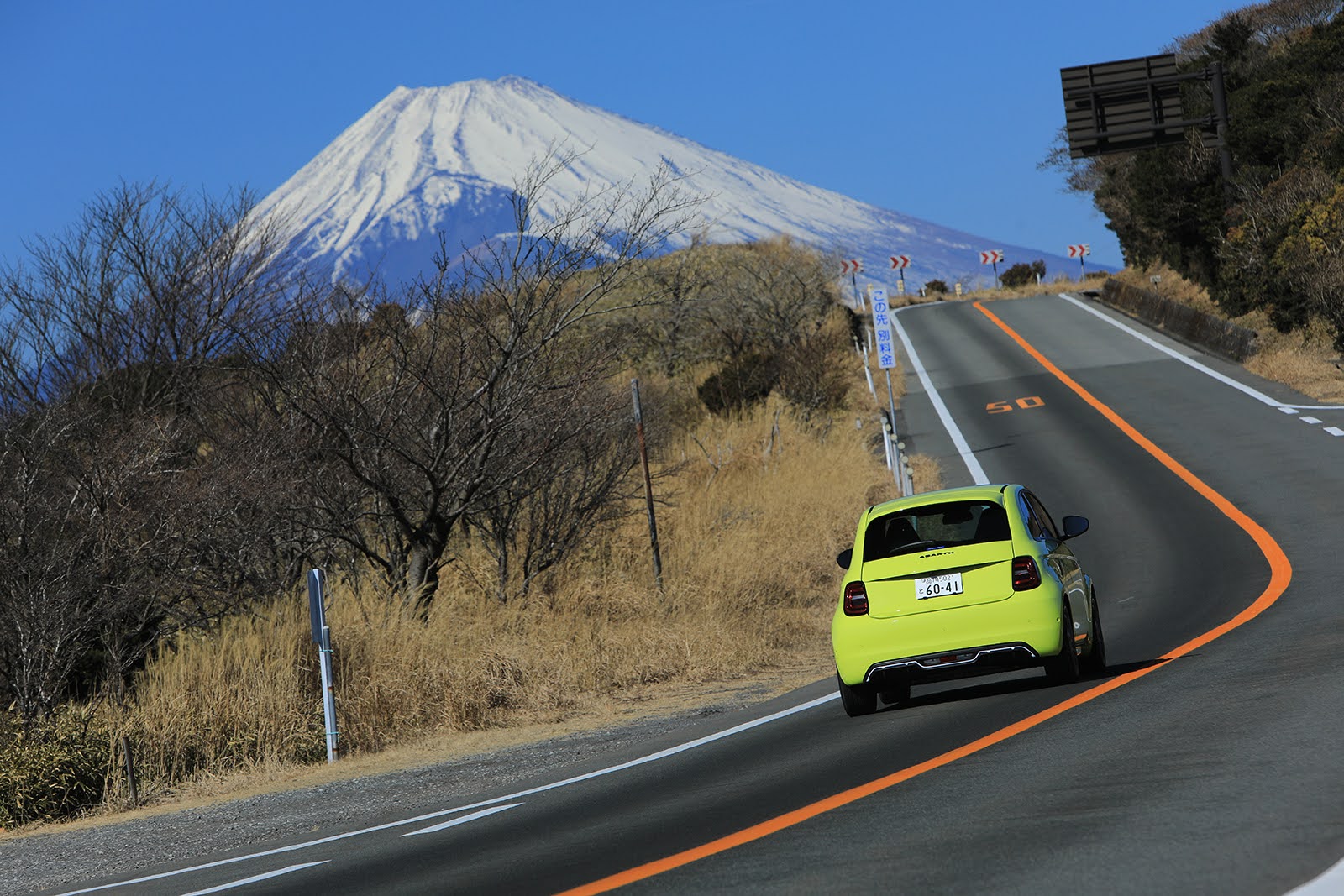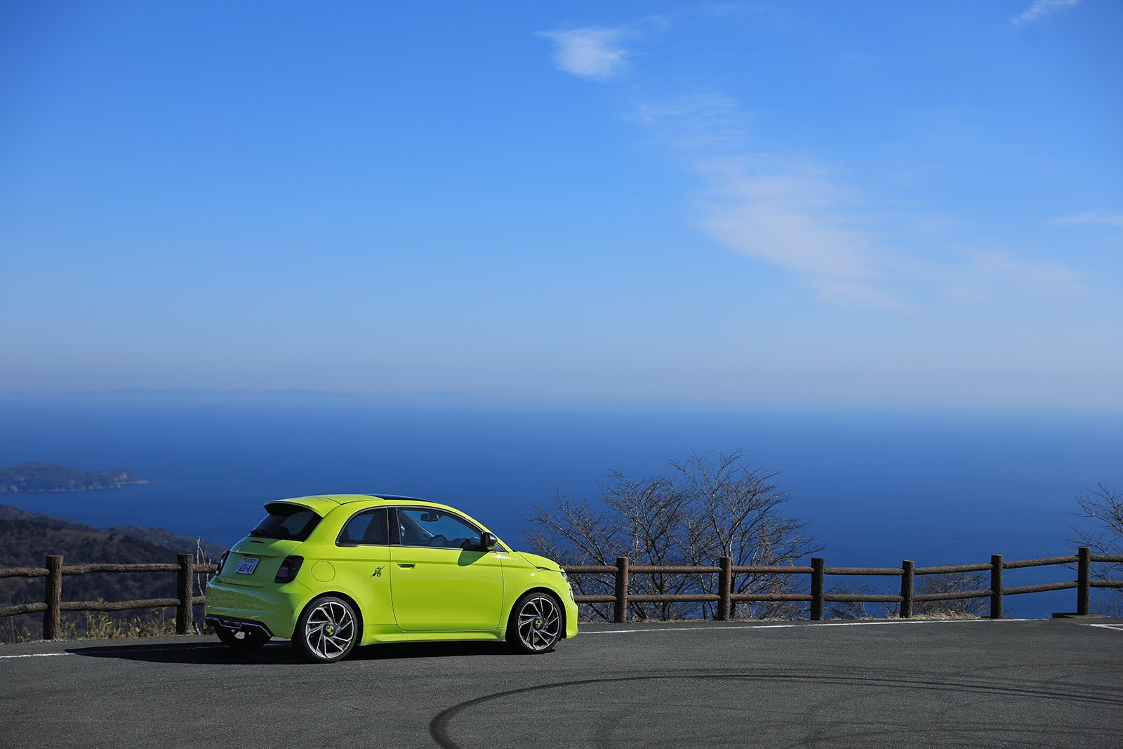 そして嬉しいことに、このルートには展望のための駐車場が軽く10以上もあって、場所に寄っては富士山とペアで、あるいは海バックで、アバルトとの記念写真を撮ることもできるのです。春には春の、夏には夏の、秋には秋の、冬には冬の、季節ごとにそれぞれの表情を余すことなく見せてくれたりもします。日本全国の様々なワインディングロードを走ってきましたが、ここは間違いなく“日本屈指の絶景ワインディングロード”。走ってみて、後悔することはないでしょう。