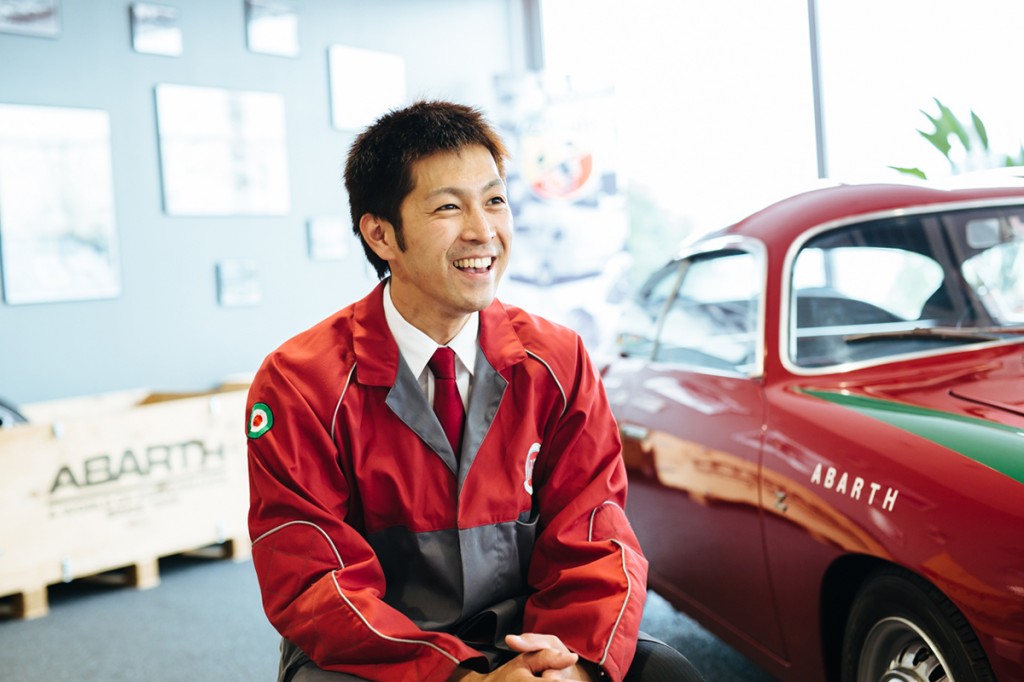 待ち時間を利用して、アバルト横浜町田のTECマエストロ、山崎圭介工場長に少しだけお話をうかがってみました。